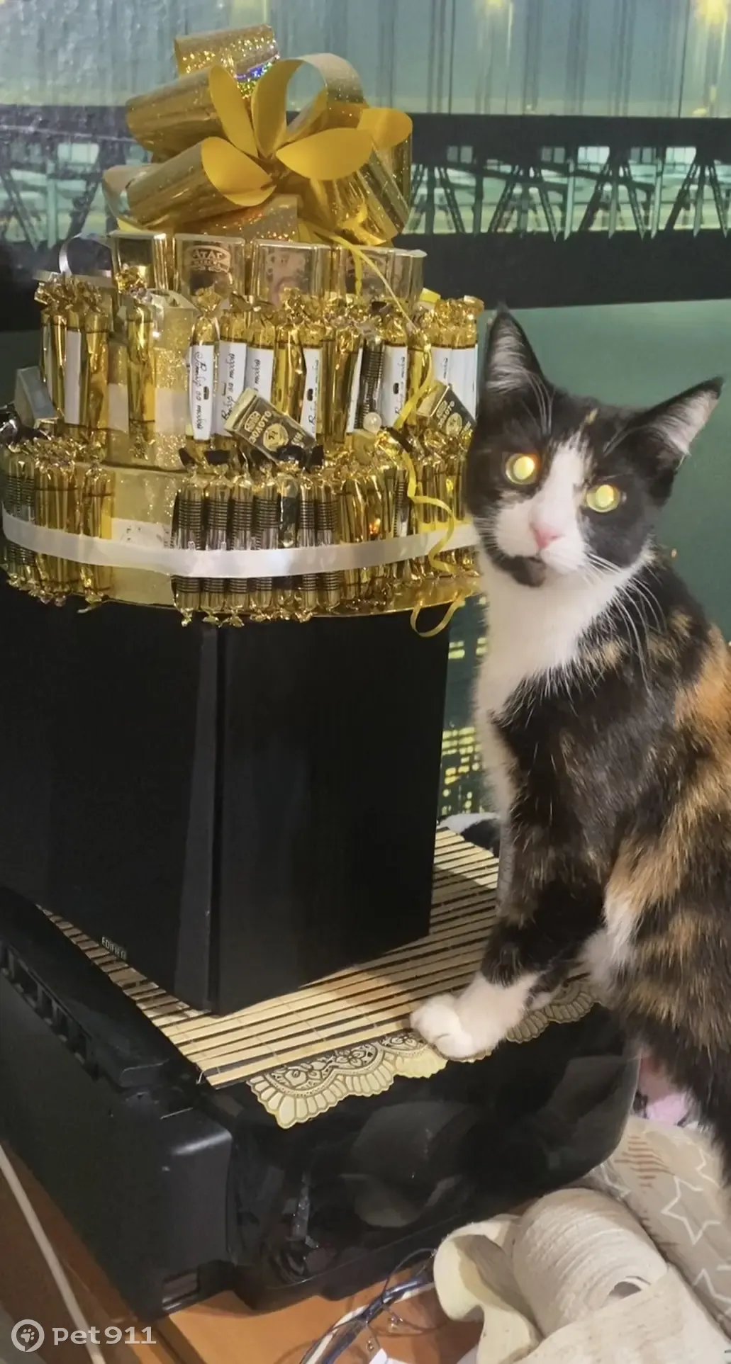 Девочка кличка Моня .живет на первом этаже в коммунальной квартире наверно выпрыгнула из окошка кухни .опомнились утром что ее нет .но была вечером поздно дома
