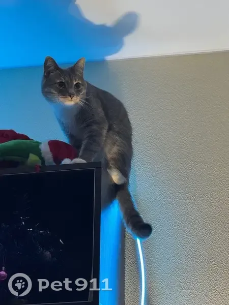 Кот, кастрат. Серый с белыми полосками и белыми лапами, желтые крупные глаза. Незаметно выбежал из квартиры в подъезд 07.03 около 22:00 вечера. На подушечке задней правой лапы родимое пятно. Не агрессивный, пугливый, может идти на контакт.