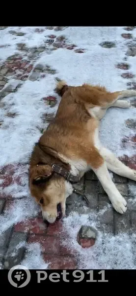 Собака породы алабай рыжий на морде немного черного. Крупный. Очень боится хлопков и взрывов видно очумел и побежал куда глаза гядят.