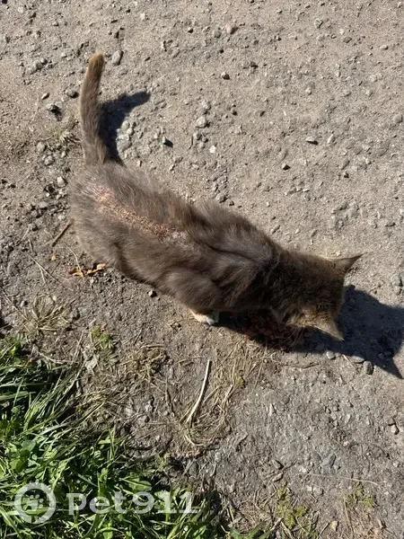 Очень добрый(ая) и ласковый(ая) кот/кошка; невероятно голодный(ая); сначала были болячки на спине, теперь уже над глазами добавились, шерсть выпадает в этих местах. Цвет: серо-коричневая. Спит в траве или прямо на дороге, никуда с этого место не уходит