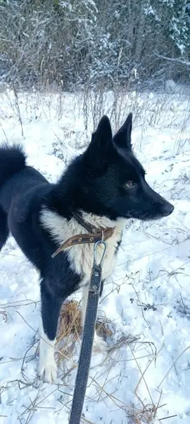 Сегодня утром, пришёл к дому кобель русско-европейской лайки. Очень ласковый, упитанный, молодой. Не уходит, волнуется. Хозяин, отзовись!