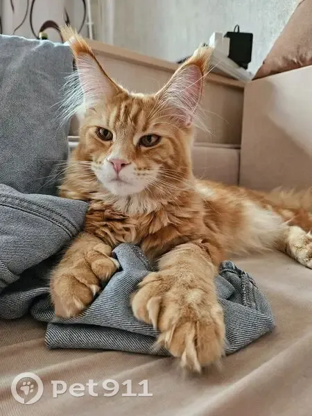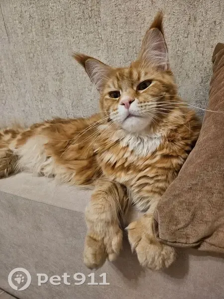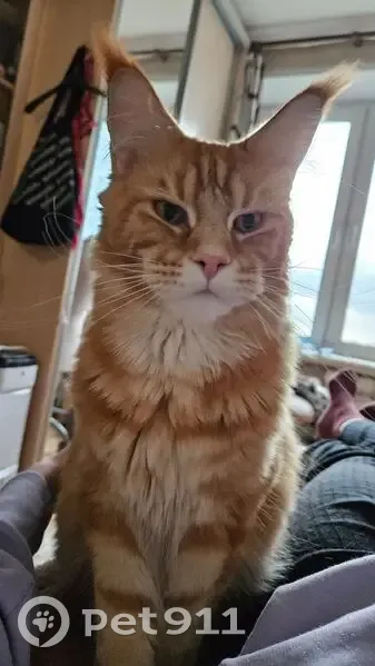 СНТ КОРОВИНО, Антоновка 1 линия. Крупный мейн кун. 1 год. Вес около 7-8 кг (крупный и тяжелый). Рыжий полосатый окрас, белая грудка, длинные кисточки на ушках. Длинный пушистый хвост. На передних лапах 6 и 7 пальчиков, на задних по шесть. Крупные лапы. Большие валики щеки на мордочке. Одет был в тканевый цветной ошейник с принтом. Днем вышел с участка , обычно не выпускаем, тут не доглядели. Пугливый, шугается резких движений и звуков. Новых людей тоже боится. Пожалуйста, помогите найти. 89859702723 Екатерина 89035433420 Светлана