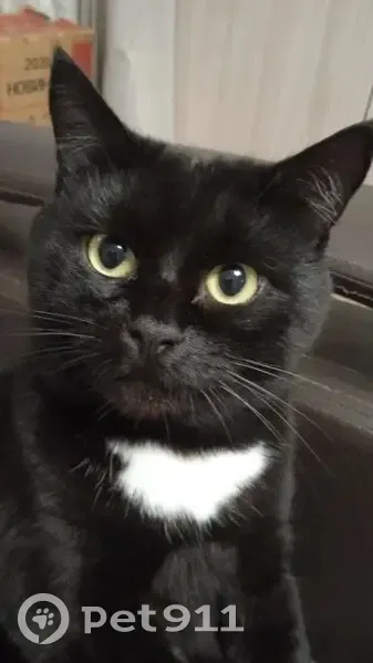 Черный,гладкошертный,на шее под мышками и на брюшке белая шерсть,пугливый,взрослый кот.Не совсем адекватный бывший муж,воспользовался пока меня не было дома,увез кота в неизвестном направлении в лесополосу и выкинул по словам его.