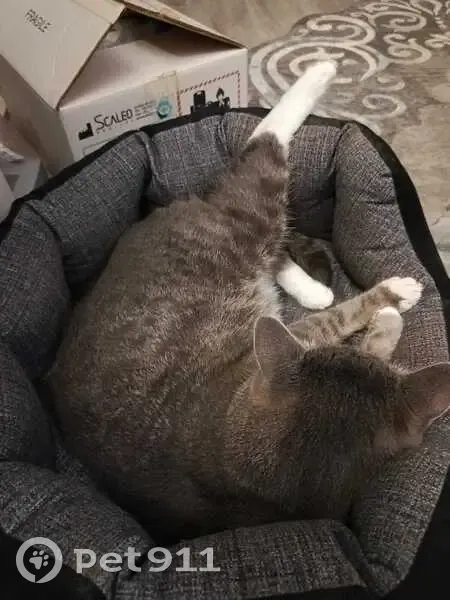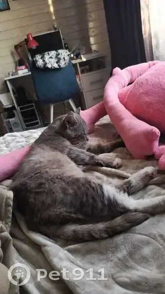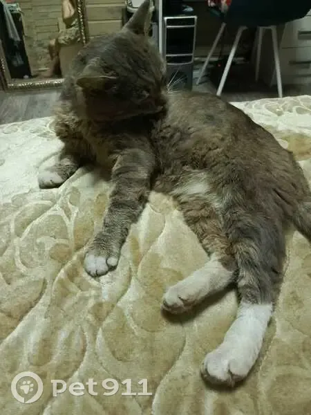 Добрый, ласковый, любит детей, терпеливый, наглый Серый, задние лапки белые(как будто в носочках) Кастрирован Есть пупочная грыжа Вечером ушел гулять и не вернулся Ночью был дождь мог спрятаться в ближайших домах или под машиной