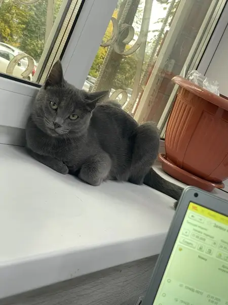 Кошка:окрас графит(темно-серая) девочка. Вынесли погулять и забыли про неё. Вышли а её нет она не могла убежать. Она боится проезжей части. Кошка умная)