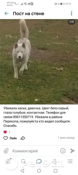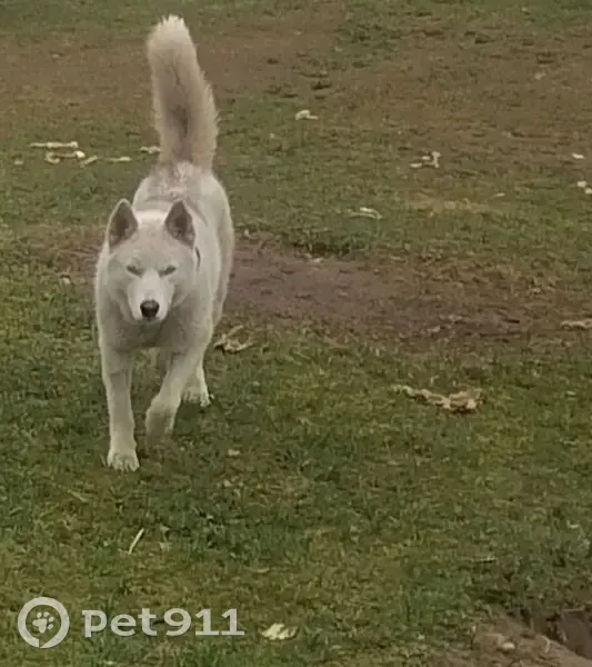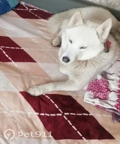 Белая девочка хаски, по хребту серая полоса, глаза голубые. Убежала из частного дома, ошейник и адресник остались на территории дома, очень хитрая девочка. Контактная.