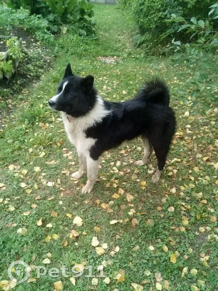 Русско-европейская лайка, кобель, черно-белый окрас: белые лапы, грудь,шея,кончик хвоста. Был в черном, кожаном ошейнике. Особая примета: отсутствует кончик левого уха.