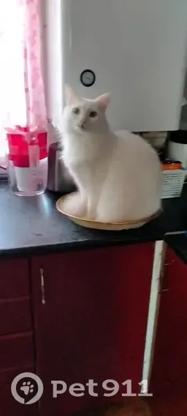 Белый пушистый кот возраст 4 года глаза зеленые, вес около 7кг, очень пушистый хвост . Вышел погулять в 11ч утра гуляет строго по территории дома не более двух часов. Сейчас 21-30. Обошли все улицы поиски н чего не дали.