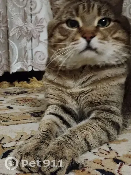 Кот хромает на заднюю левую лапу (раньше была операция). У него нет верхнего левого клыка. На нем был светло-бежевый ошейник от насекомых. Убежал во время ночной грозы. Откликается на кличку Серый, Серик, ласковый и добрый кот 12 лет.