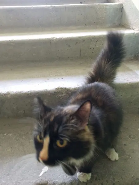 Кошка явно домашняя, мурчит, максимально тянется к людям. Она очень худая, явно породистая, большие сильных лапы. Примерно год. Ощущение что кошка после стрижки ибо шерстка в каких-то местах твердая как будто только обрастает. Найдена в районе уктус, забрать не могу но и оставить жалко. Максимальный репост.