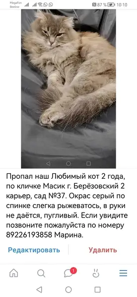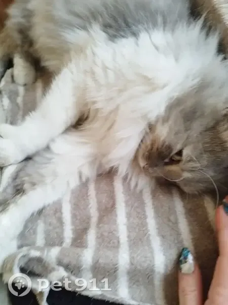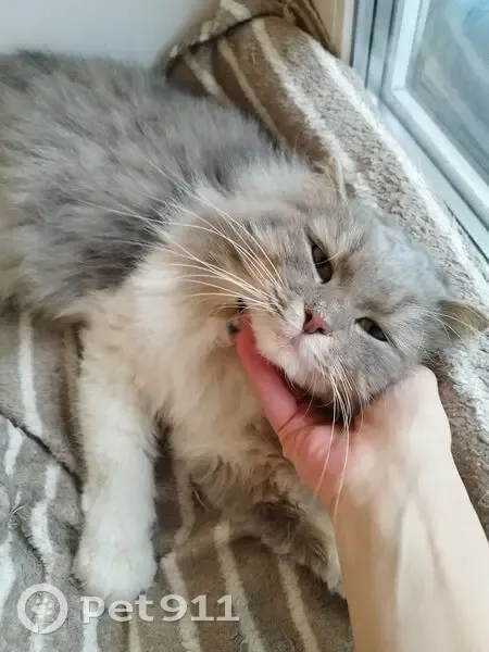 Длинношёрстный, пушистый с очень мягкой шерсткой. Светло-серый с белыми лапками, грудкой и животиком. На спинке и боках тоненькие белые полосочки. До поимки примерно 2недели обитал в подвале. Неравнодушные дамы отловили бедолагу. Я взяла его к себе вторым котом. Со старшенький пока не дружат, но и не дерутся. Возможно, кто-то потерял бедолагу, ищет, переживает! Если хозяева не найдутся - оставлю себе. Придется парня кастрировать.