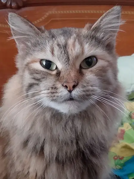 Найдена молодая вислоухая длинношерстная кошка, серый окрас. Ищет старых или новых хозяев.