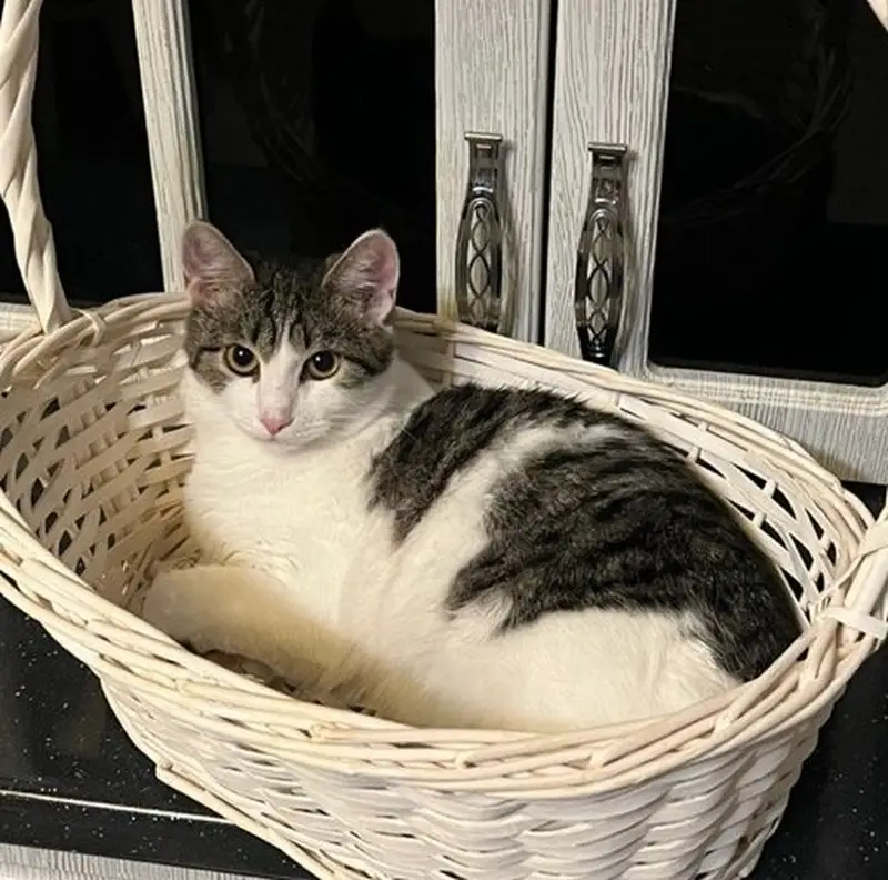 Найден серо-белый кот (п. Шувакиш, ст. Гать, г. Екатеринбург) С июня на нашем участке в саду "Строитель" (ст. Гать) живет вот такой кот. Пришел худой, голодный, явно домашний, раньше был в зеленом ошейнике - позже ошейник куда-то пропал. За 2 месяца превратился в крупного красивого кота. Очень хочет домой. Возможно, убежал с Шувакиша или с Гати. Ищет старых или новых хозяев. Тел. . Елена