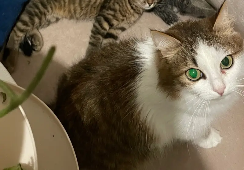 Найден котёнок, ориентировочно 4-5 месяц, сняла его с дерева, очень сильно был напуган. На руки пошёл сразу, ласковый Ухоженный, упитанный.