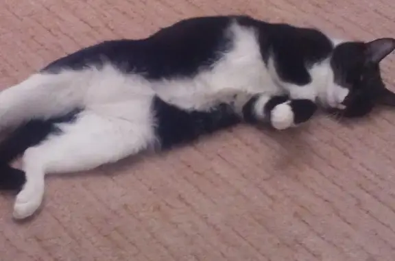 Найден кот/кошка около пол второго ночи на улице по адресу Сахарова 68. Явно домашняя, рук не боится. Есть ранка на верхней губе и что-то на нижней, не дает рассмотреть.