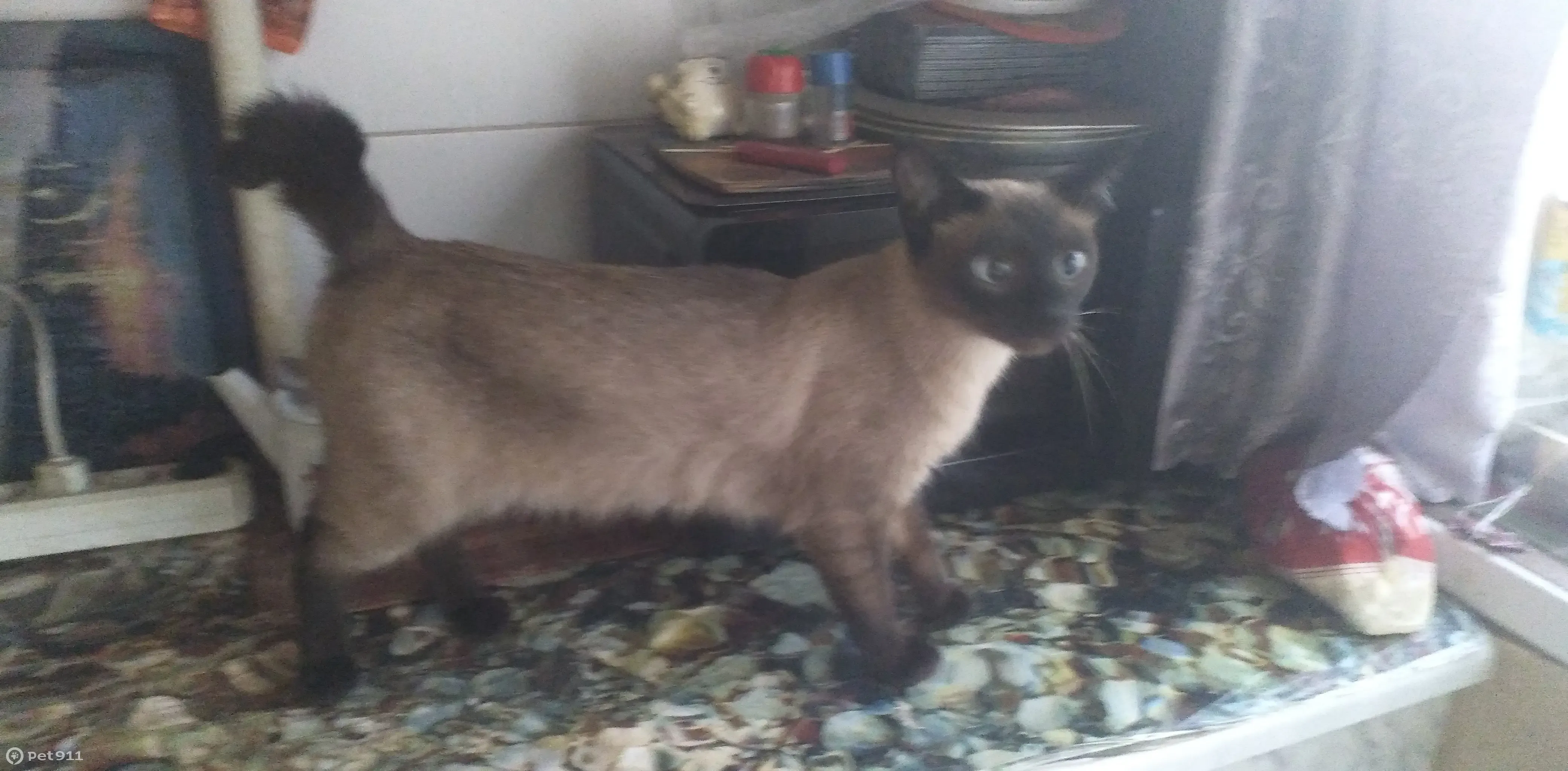 Кошка породы боб теел, песочно-чёрный акрас, подкинули охраннику он назвал её Маней и отпустил гулять возле магазина там я её и ношла, охранник был не против того что я её зобрала.