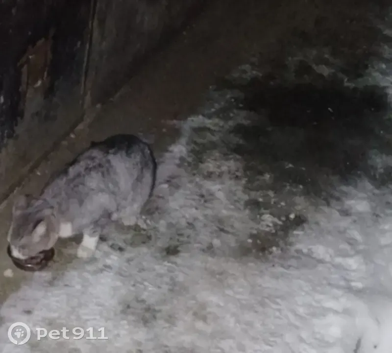 Несколько дней сидит у подъезда котик или кошечка. Видно, что домашняя в ошейнике, но пока в стрессе и в руки боится идти. Подкармливаем, но может кто-то ищет любимчика.