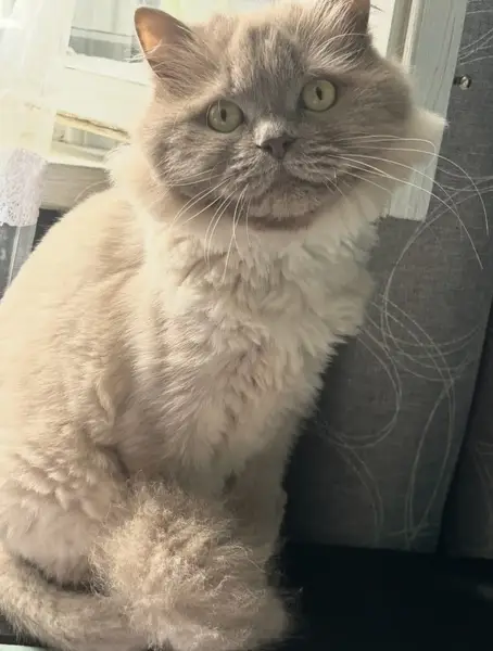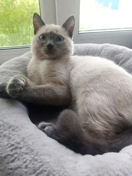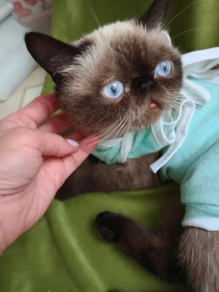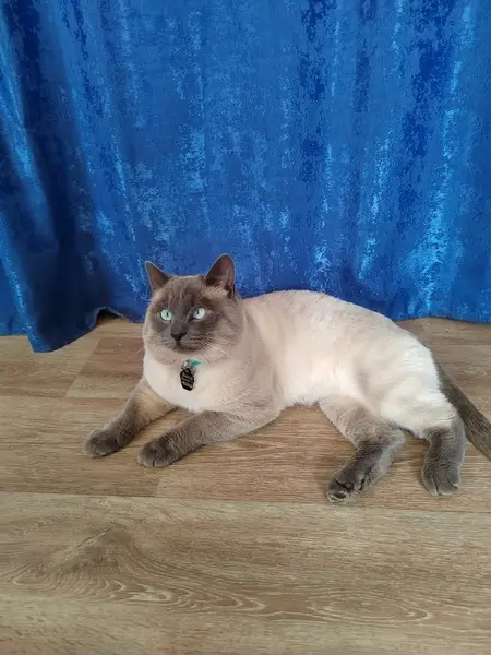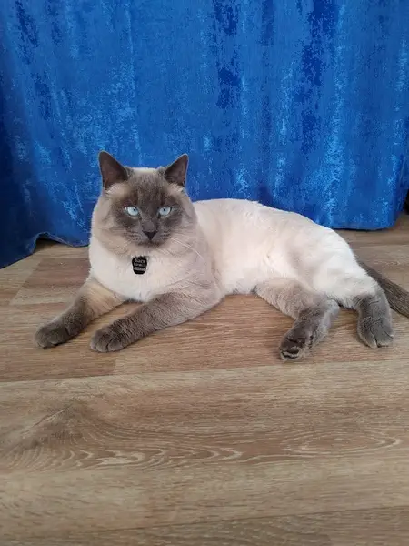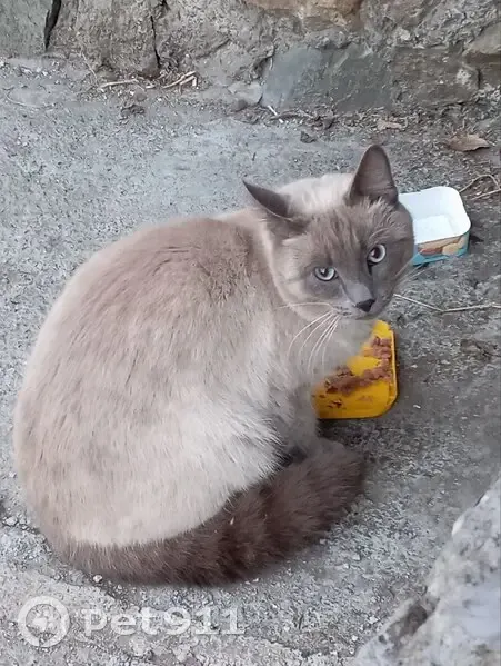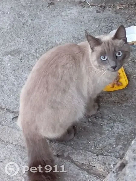 Стал часто появляться во дворе дома, выглядит как домашний, достаточно боязливый. Первый раз увидели приблизительно в 10 числах марта. Небольшой, с голубыми глазами, вроде как породистый. На данным момент живет на улице, где-то возле двора, где его подкармливают.