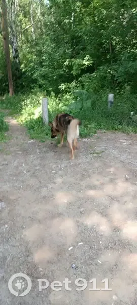 Найдена собака, кобель, метис лайки. При попытке погладить осторожно отбегает и лает, периодически воет. На нем разноцветный ошейник. Взять не смогла, убегал. Бегает в районе парка семь ключей, остановка трамвая конечная, Дружинников.