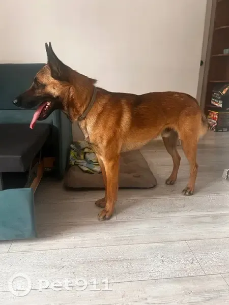 14.08 около 11 часов на Машинной в районе Щорса, Собака прибилась ко мне с моей собакой, была в ошейнике и ошейнике против клещей. Очень ласковый, совсем не агрессивный. Плохо реагирует на команды, но возможно из-за стресса. Пока не ест только пьет .