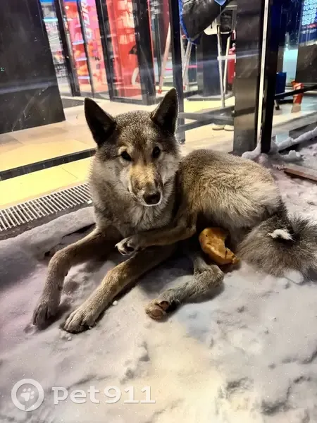 Замечена собака, лайка? На АЗС, Серовский тракт, направление г.Екатеринбург, в районе г. Невьянск. Собака находится несколько дней, сотрудники поставили коробку, чтобы хоть как-то могла укрыться от ветра.