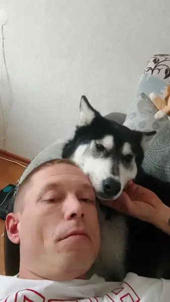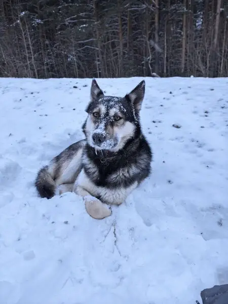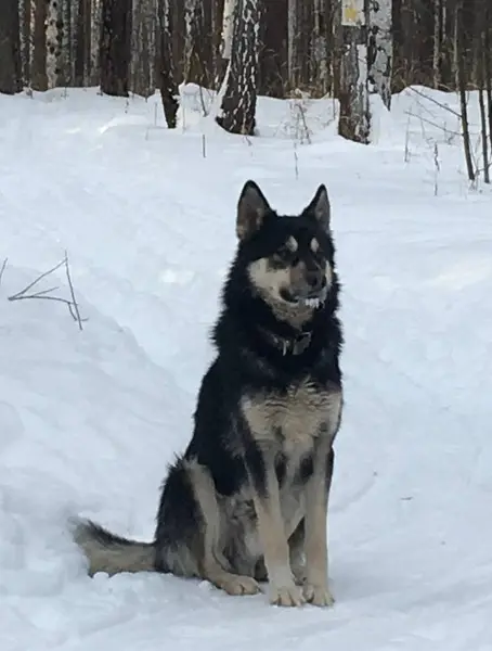 ЗАмечена хаски, лайка, Окрас серо- бьлый, гладкошерстная, глаза разного цвета, один голубой, другой карий.