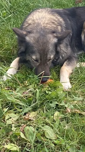 Средних размеров собака(как некрупная немецкая овчарка), с ошейником. Так же имеется крепление под цепь и окантовку, судя по всему сторожевая или дачная. Крайне спокойная и послушная. Имеет темный окрас, как на фото. Глаза вроде бы карие, лапы белые, а вокруг глаз небольшой узор. На фото должно быть видно. Породу распознать не смог. Нашел на коврике у подъезда. Лежала и пыталась греться. Сука или кобель мне не известно. Находится в текущий(16:15 по Екб) момент на улице в радиусе здания. Было не очень сытно, но накормлена.