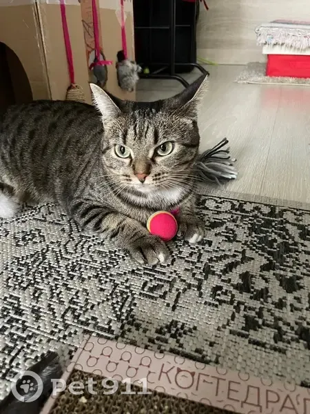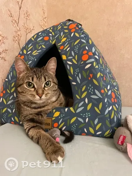 Окрас камышовый, простая дворовая, глаза зеленые, на передних лапах по белому пальчику, белое пятно под подбородком на шейке. Полтора года. Вознаграждение гарантировано.