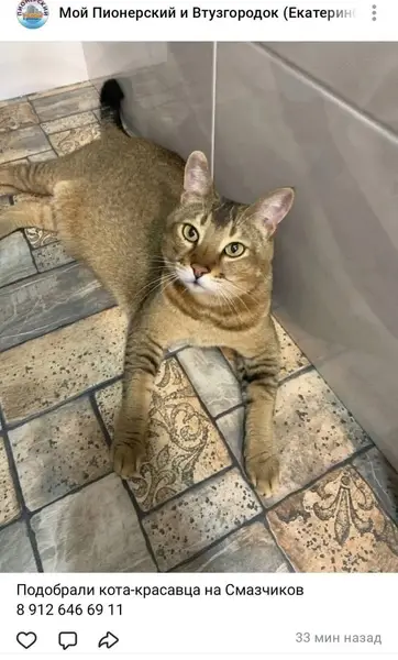 Окрас серый ,но волос трех составной Внизу живот болтается(кошачий курдюк),кошка крупная, ладони лап полностью черные 03.07 в районе 21:30 выбежала в подъезд(бесконтрольно)с этого момента не видели