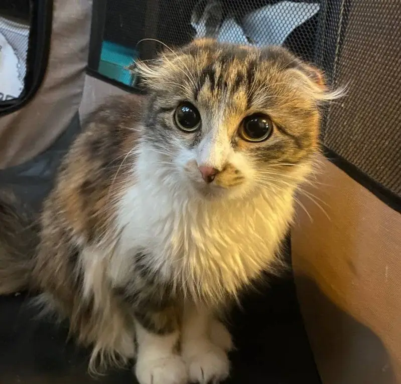 Окрас белый с камышовым. Не на самовыгуле. С чужими осторожная. Сбежала с балкона. Улицы боится.