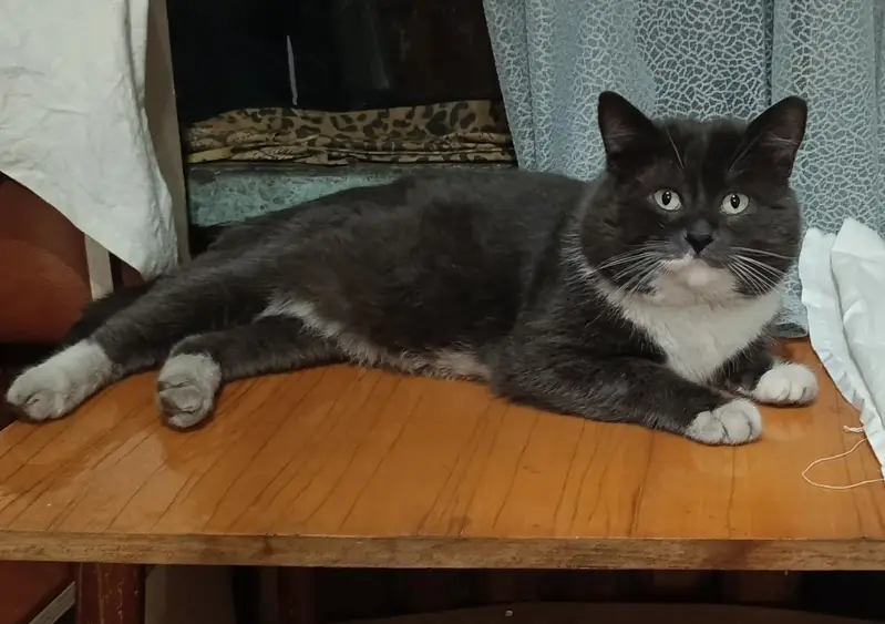 Выбежала из двора ул . Евгения Савкова 8, в сторону ленты около Евгения Савкова 15. Окрас серый , грудка и лапки белые
