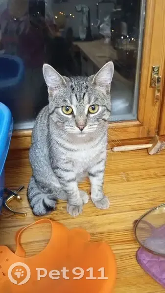 Окрас серый с полосками. У него кончик хвоста согнутый и поэтому кажется, что хвост короткий. Как то оказался в коридоре, позже заметили , что его нет дома и начали поиски. Все этажи прочесали и не раз, объявления даны, фотки распечатаны и расклеены. Просим сообщить в любое время суток, кто может заметит, сообщить любую информацию