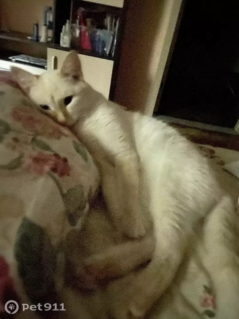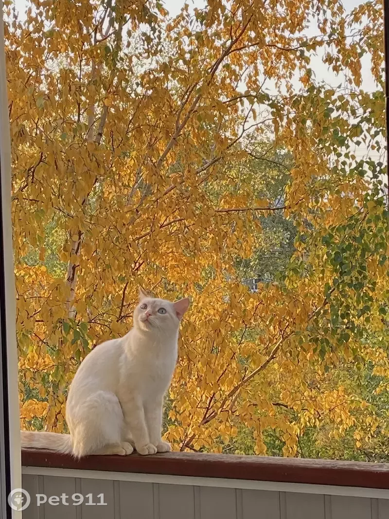 Спрыгнул с балкона 4 этажа на стоящую березу под окнами (каким образом - неизвестно, она достаточно далеко расположена), пока была на работе , он все это время сидел на дереве, голодный и напуганный. бытовыми способами снять его с дерева так и не получилось, службы зоозащиты работают с утра, так что он остался на ночь на дереве, но потом пошел дождь, по всей видимости кот все-таки успокоился и смог слезть, убежал в неизвестном направлении, возможно в теплый сухой подъезд или подвал