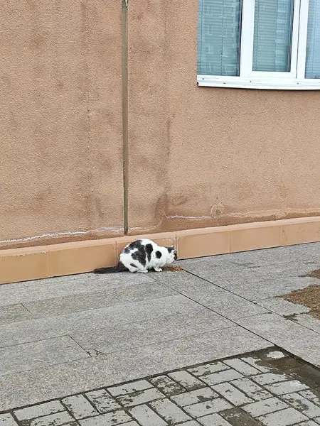 Кошка, возраст около 9 месяцев, черно-белый окрас, отзывается на имя Киба или просто Коська, из особых примет - маленькая белая кисточка на самом кончике хвоста, ручная. Выпрыгнула из окна второго этажа и убежала