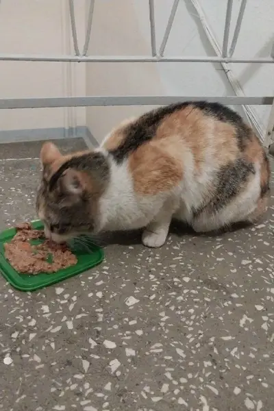Кошка, 14 лет, хорошее здоровье, трех цветная, гладкошерстная, Муся, очень ласковая, но на улице может быть диковата.