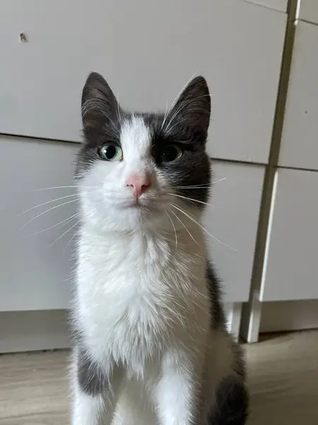 5 месяцев, черно-белый окрас, есть черное пятнышко у рта.