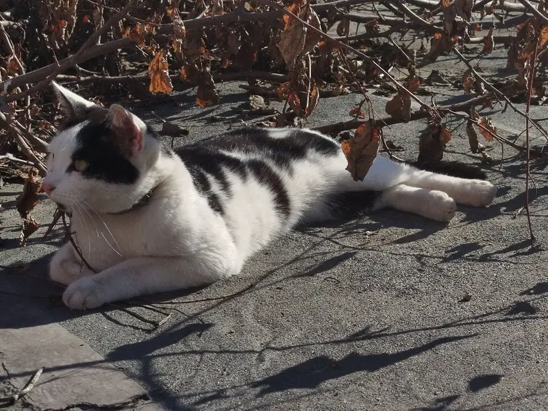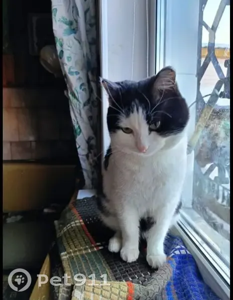Выбежал рано утром из частного дома черно- белый кот. Крупненький, кончики ушек немного отмороженные.