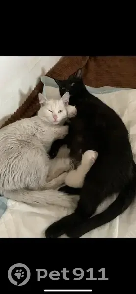 Потерялись две кошки, черная с белым пятном на груди, ласковая Касатик 5.5 лет .Стерилизованная. Белая ее мама 6.5 лет, Снежа, стерилизованная. Кошки средние по размеру.