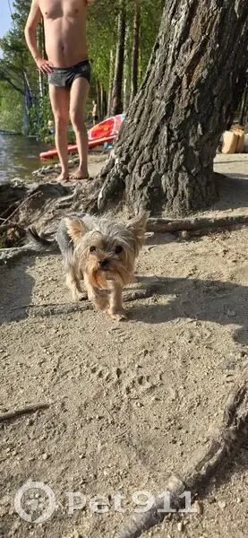 Йоркширский терьер, серый окрас, надет серый резиновый ошейник от клещей . Ушла от дома где живёт, окодо 22 часов 27 июня,была не под надзором в течении 15 минут, ушла от мужа хозяйки, хозяйки в городе нет, ранее никогда не уходила.