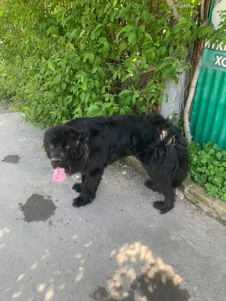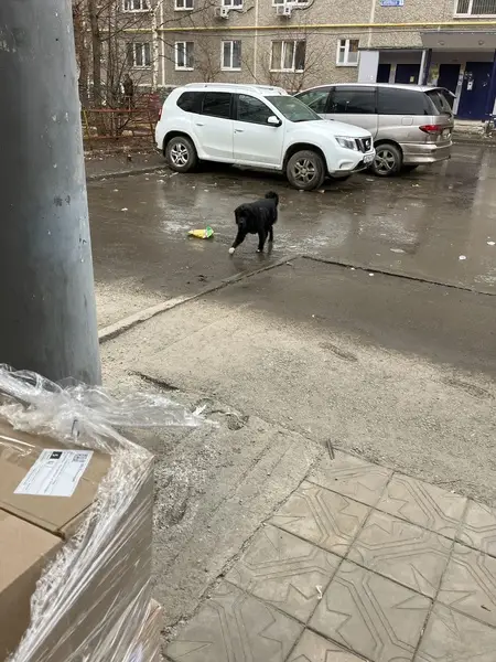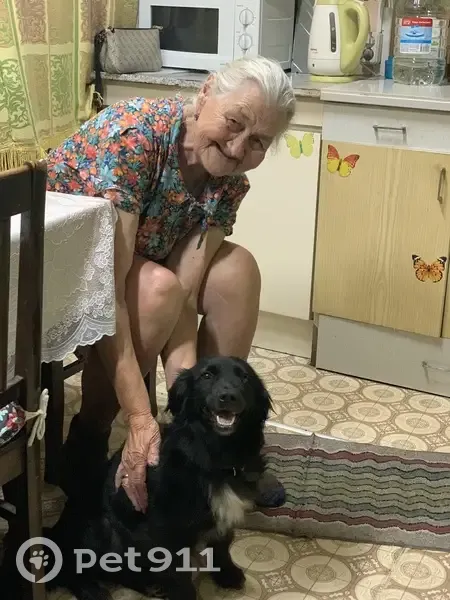 Дворняжка- метис , черная с белой галочкой на груди, ей 3 года, попала к нам из приюта. Мила очень ласковая , дружелюбная, не кусается, но очень напугана. На ней черный ошейник и поводок- рулетка с синей ручкой.