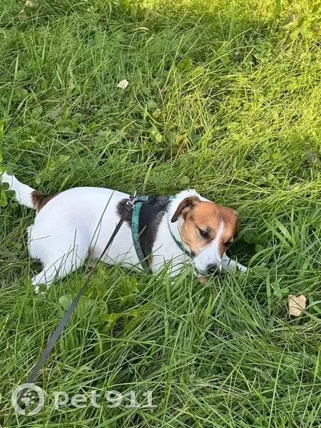Сегодня днем собака (порода Джек Рассел) убежала от хозяина в районе оперного театра. Бежала в сторону Малышева. Очевидцы говорят, что она перебежала Малышева по Луначарского и бежала дальше до Куйбышева. Собака убежала в зеленой шлейке (есть на фото). Пожалуйста, помогите найти! Очень переживаем… звоните +79090094846 Даша