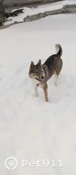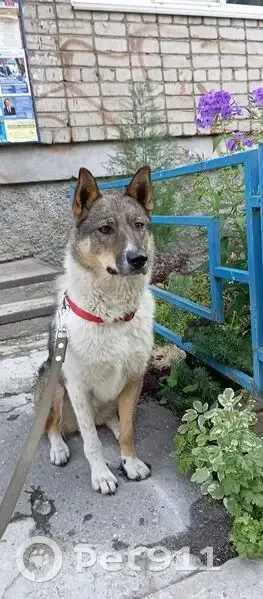 Белая грудь, коричнево черная. КРАСНЫЙ ТОНКИЙ ОШЕЙНИК, кончик хвоста белый, не агрессивная, просьба по возможности зафиксировать, видели недавно индустрии-комунистическая, возможно бежит в сторону В. Пышмы