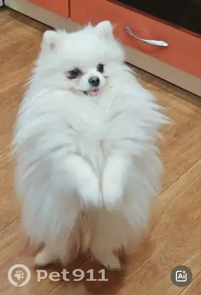 Померанский шпиц, окрас кремово-белый, мальчик 1 год, кличка Умка Очень добрый, любвеобильный, без ошейника, слезятся глазки.