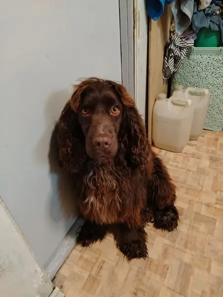 Вечером 1 января потерялась собака в районе Ясная, 32/2, выбежала из подъезда, а рядом хлопнули хлопушкой. Порода: русский спаниель, девочка, коричневого окраса, откликается на кличку Дина. Помогите найти верного друга. Дети очень надеются на её возвращение. 89045489843