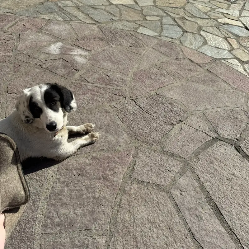 Порода дворовая, окрас пятнистый, лапки и живот белые, спинка черная, над глазами желтые пятна, пол женский, возраст примерно 3 месяца. Есть ошейник с подвеской, в которой записан телефон.