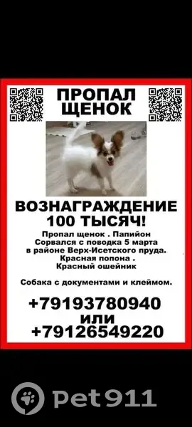 Пожалуйста, умоляю!!!! Помогите найти домашнего любимца. Папийон мальчик 6 месяцев, окрас бело- рыжий. Собака серьезно больна, требуется дорогостоящее лечение. За любую достоверную информацию о домашнем питомце гарантирую достойное вознаграждение