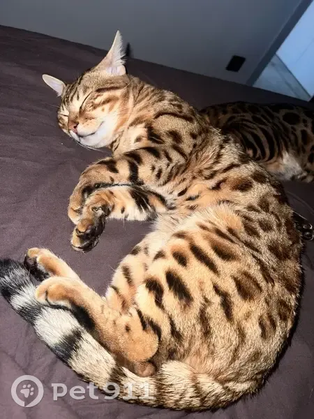 Симба удивительный, он очень умный, и никогда не сбегал, не отзывается на кис-кис, только на имя, и на кушать-кушать. Очень любил петь песни, он как будто умел говорить. Глаза зеленые, бенгал, вес +- 8-9кг, не стерализованный, к людям вроде как хорошо относиться, не видела за ним никогда агрессии