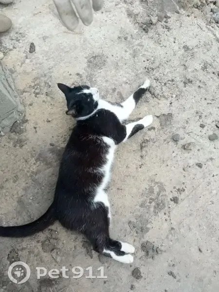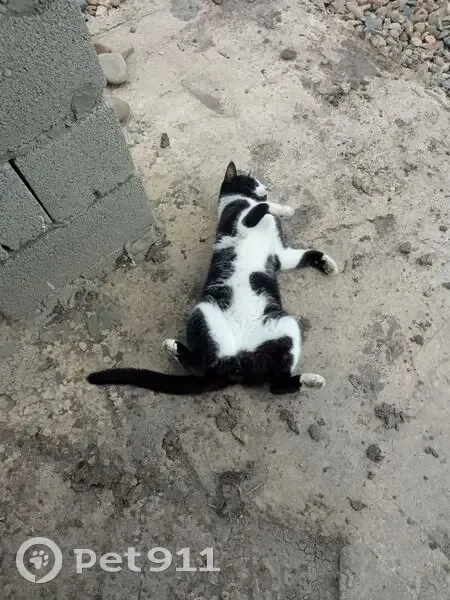 Найден кот черный с белыми пятнами, чистый, очень ласковый.