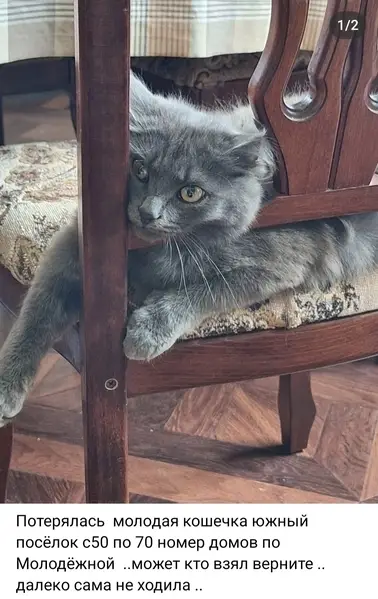 Кошка найдена в ужасном истощении и язвах. Чистая порода - Шотландская вислоухая, примерно 2-3 года. Сейчас полностью здорова и стерелизована. Ищет заботливую семью. Очень умная, спокойная, чистоплотная. Ходит только в лоток, ест сухой корм «Сириус» для стерилизованых котов, по столам не лазит, не мяукает и не бесится по ночам. Для детей не подойдёт, не любит когда её берут на руки. +79183521281. Доставка.