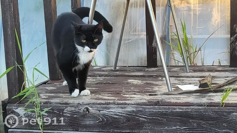 Черный с белой грудкой, глаза жёлтые, крупный, гладкошерстный,ушёл гулять во двор и не пришёл домой. Если где-то случайно закрыли, вы его услышите, кот о себе заявляет, не боится людей, идёт на контакт, дружелюбный